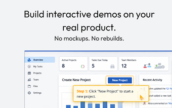 ด้วยอินเทอร์เฟซที่ใช้งานง่าย ผู้ใช้สามารถคลิกที่องค์ประกอบภายในแอปเว็บของตนเพื่อเพิ่มขั้นตอน กำหนดการกระทำ และสร้างทัวร์ที่มีแนวทางซึ่งสะท้อนถึงฟังก์ชันการทำงานของผลิตภัณฑ์ได้อย่างถูกต้อง ซอฟต์แวร์นี้เหมาะสำหรับทีมผลิตภัณฑ์และการเติบโตที่ต้องการปรับปรุงประสบการณ์การแนะนำผู้ใช้ โดยมั่นใจได้ว่าขณะที่ผลิตภัณฑ์พัฒนาไป การสาธิตยังคงมีความเกี่ยวข้องและมีประสิทธิภาพ
